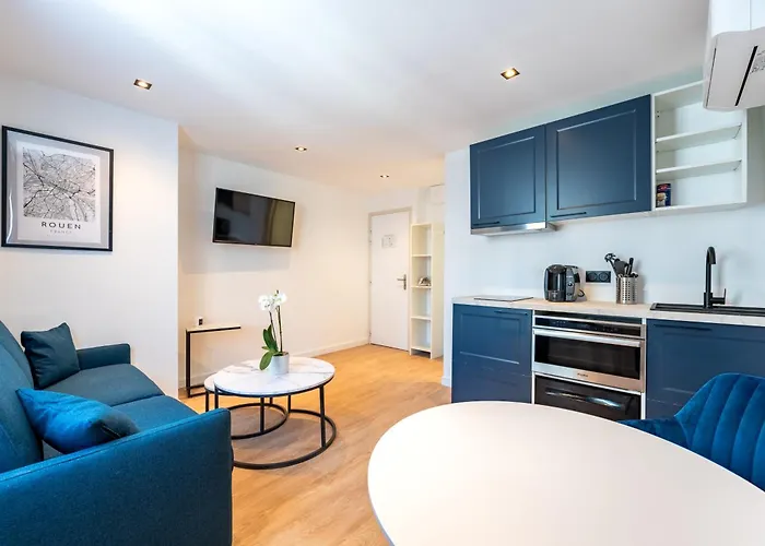 Studios Le Medicisアパ-トメントには,台所,コ-ヒ-/紅茶メ-カ-,書き物机 と衛星放送チャンネルの薄型テレビ付きの客室があります. ル-アンの大時計から徒歩25分,グラモン公園から車で10分です.